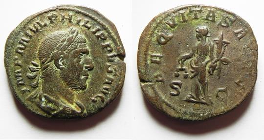 HIGH QUALITY: Philip I. A.D. 244-249. Æ sestertius. Rome