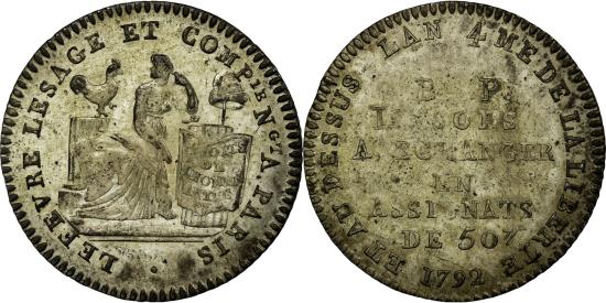 | | Coin, France, Lefevre Lesage, 10 Sols, 1792, , Silver, KM:Tn19 | | | Seated figure, Inscription, legend around outer rim | | FEATURES |
