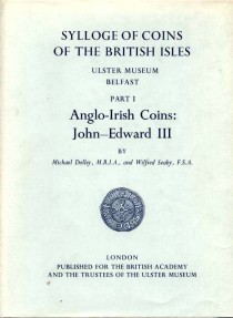 R. H. M. & Dolley & Wilfred Seaby: Sylloge of Coins of the British Isles (10). Ulster Museum Belfast. Part 1. Anglo-Irish Coins. John - Edward III, London, 1968, lvii, 16 plates with facing text, blue cloth, dust jacket. Fine/Near New.
