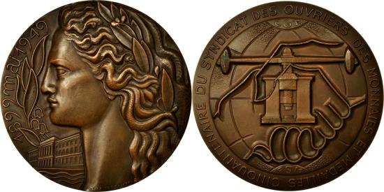 | | France, Medal, Syndicat des Ouvriers des Monnaies et Médailles, 1949, | | | FEATURES |