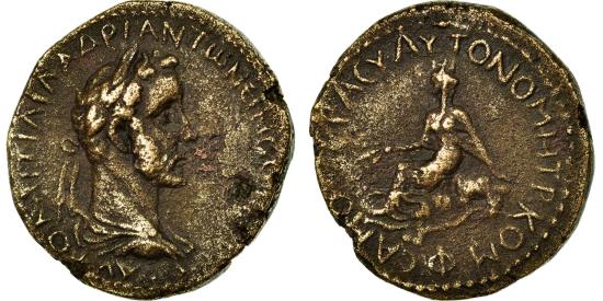 | | Coin, Commagene, Antoninus Pius, Bronze Æ, 138-161, Samosata, | | | Laureate and draped bust right, Tyche seated left on rock, holding grain-ears; below, river god swimming right | | FEATURES |