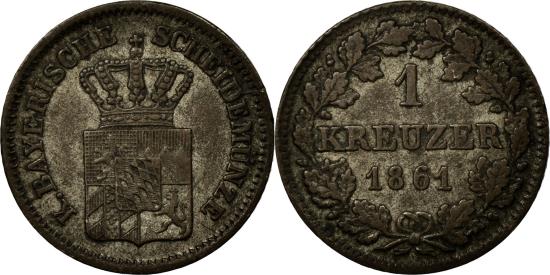 | Coin, German States, BAVARIA, Maximilian II, Kreuzer, 1861, Munich, |