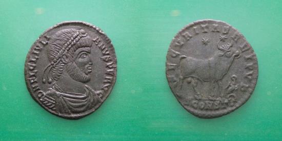 Obv.: D N FL CL IVLIANVS P F AVG, Diademed, draped and cuirassed bust right Rev.: SECVRITAS REI PVB/S CONST, Bull standing right, two stars above; right in field: eagle standing right on wreath, head left; wreath in beak. RIC: 322 Material: bronse Weight:: 8.61 gr Diameter: 27 mm very nice |