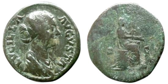 Lucilla AE Sestertius, Rome, c. AD 164-170 30 mm - 22.49 g LVCILLA - AVGVSTA Diademed and draped bust right, hair knotted behind R/ [ CERES] Ceres seated right, on cista mystica, holding two corn-ears and torch. RIC 1728, C 2. nice bust |