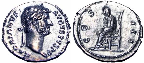 AD 117-138. AR Denarius (19mm, 2.86 g, 6h). Rome mint. Struck circa AD 124-128. Laureate bust right, with slight drapery / Pudicitia seated left on throne. RIC II 178; RSC 393. Near EF, toned. Wonderful portrait.