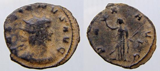Gallienus (253-268). Antoninianus (19mm, 2.35g). Rome, 264-267. Radiate head r. R/ Pax standing front, head l., holding olive branch and transverse sceptre; T in r. field. RIC V 256.