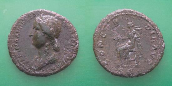 Rev.: CONCORDIA AVG, Concordia seated left on throne, holding patera