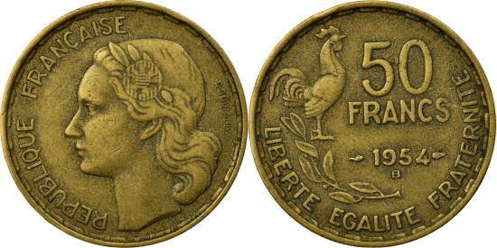 | | Coin, France, Guiraud, 50 Francs, 1954, Beaumont - Le Roger, | | | Guiraud, Head left, Rooster above laurel, denomination at right | | FEATURES |