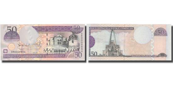 | | Banknote, Dominican Republic, 50 Pesos Oro, 2003, 2003, KM:170c, UNC(65-70) | | | 2003. Violet to left on face., Santa Maria la Menor Cathedral at right. Wide border printing at upper center right., Basilica de Nuestra Se<nt>ora de la Altagracia at left., Purple and dark brown on multicolor underprint. | | FEATURES |