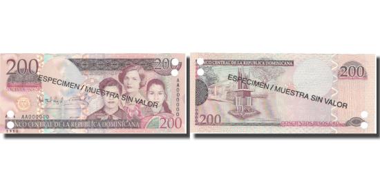 | | Banknote, Dominican Republic, 200 Pesos Oro, 2007, 2007, Specimen, UNC(65-70) | | | FEATURES |