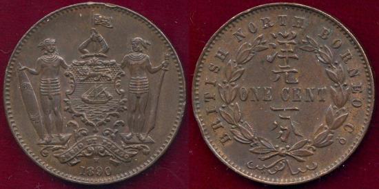 BRITISH NORTH BORNEO 1890-H 1 CENT XF