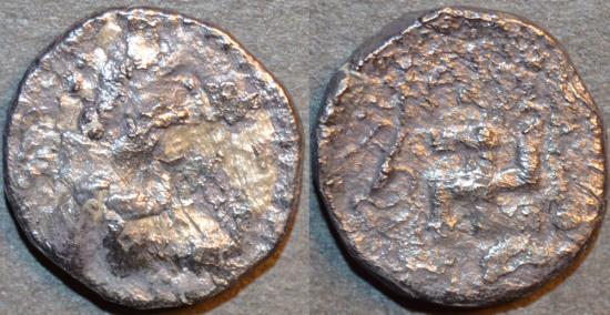 Yolamira was the first Parata king to issue coins, a series that lasted about 175 years. This coin belongs to the second phase of Yolamira's coinage and is better in hand than in the photo. For a catalogue of these coins, see