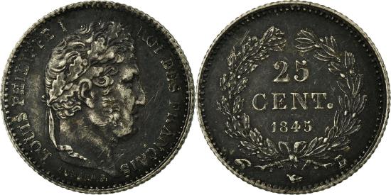 | | Coin, France, Louis-Philippe, 25 Centimes, 1845, Rouen, , Silver | | | Louis-Philippe, Laureate head right, Denomination within wreath | | FEATURES |