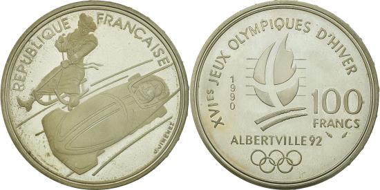 | | Coin, France, 100 Francs, 1990, , Silver, KM:981, Gadoury:C9 | | | Bobsledding, Games logo, value and legend | | FEATURES |