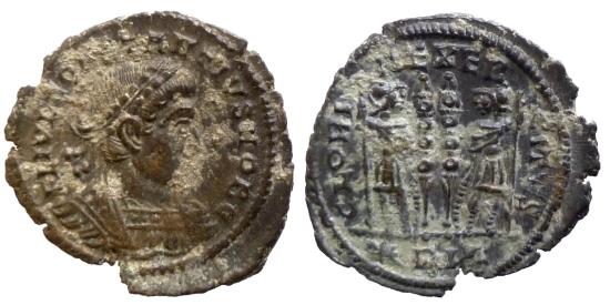 Constantius II Caesar - AE nummus - GLORIA EXERCITVS - Lyon - RIC.264 r4