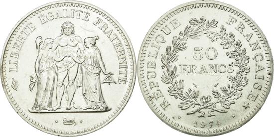 | Coin, France, Hercule, 50 Francs, 1974, Avers 20 francs, , Silver |