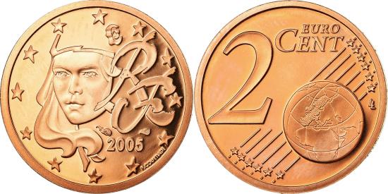 | | France, 2 Euro Cent, 2005, BE, , Copper Plated Steel, KM:1283 | | | Human face, Denomination and globe, Fabienne Courtiade | | FEATURES |