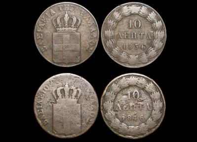 Kingdom of Greece, Copper 10 Lepta, 1837, KM# 17, EF, 1846, KMK# 25, a lot of (2) coins