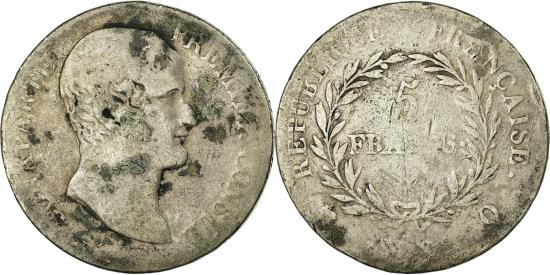 | | Coin, France, 5 Francs, An XI, Perpignan, , Silver, KM:650.6 | | | Head right, Denomination within wreath, BONAPARTE PREMIER CONSUL | | FEATURES |