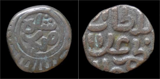 obv: 'Mahamed Shah ' in Arabic in a double circle,'Sri Sultan