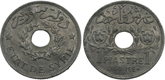 Syria. 1940-(a). 1 piastre. Unc, zinc issue.