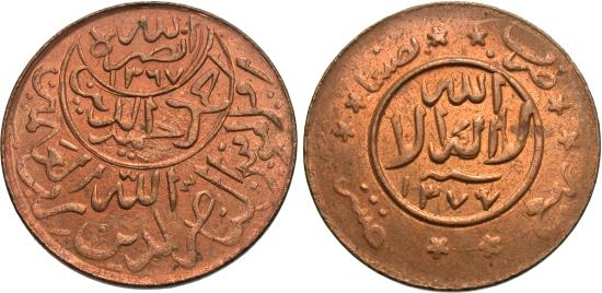 Yemen. AH 1377/6 (1957). 1/40 riyal. Unc., red and brown.