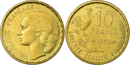 | | Coin, France, 10 Francs, 1950, Paris, ESSAI, , Aluminum-Bronze, KM:E91 | | | KM#915. | | FEATURES |