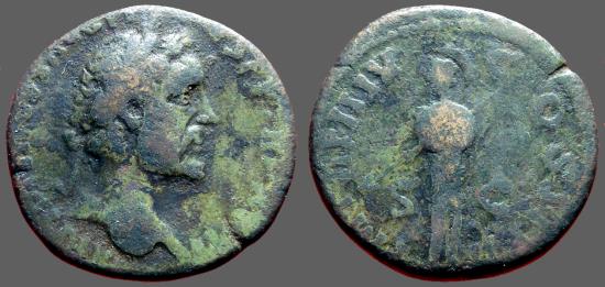 Antoninus Pius AE327 Sestertius. Minerva standing w. spear & round shield