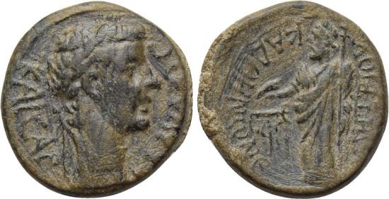Obv: KΛΑΥΔΙΟC KΑΙCAP, Laureate head right. Rev: EΠΙ ΔΗΜΗΤΡΙΟΥ ΑΡΤΕΜΑ ΚΑΔΟHNΩΝ, Zeus standing left with eagle and sceptre, monogram in field left.