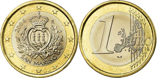 | | San Marino, Euro, 2004, , Bi-Metallic, KM:446 | | | Crowned arms within sprigs and circle within star border, Value and map, M. Frantisek Chochola | | FEATURES |