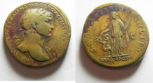 Trajan. AD 98-117. Æ Sestertius . Rome mint. Struck circa AD 112-113.