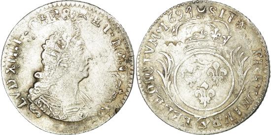 | Coin, France, Louis XIV, 1/12 Écu aux palmes, 1694, Amiens, |
