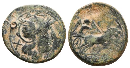 Obv/ Helmeted head of Roma right; X (mark of value) behind.