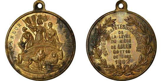 | France, Medal, Centenaire de la levée du siège de Lille, History, 1892 |