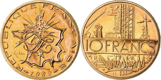 | | Coin, France, Mathieu, 10 Francs, 1982, Paris, , Nickel-brass, KM:940 | | | Mathieu, Stylized map of france, High tension towers and electric transmission wires, denomination at center | | FEATURES |