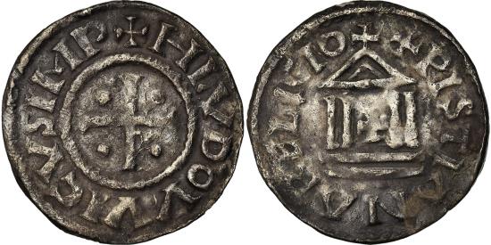| | Coin, France, Louis le Pieux, Denier, 822-840, , Silver, Prou:1016 var. | | | Croix cantonnée de quatre besants., Temple tétrastyle avec un fronton triangulaire sommé d'une croisette, une croix au centre posée sur deux degrés., + HLVDOVVICVS IMP, XPISTIANA RELIGIO | | FEATURES |