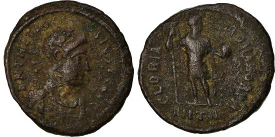 | | Coin, Theodosius I, Maiorina, 392-395, Antioch, , Copper, RIC:68 | | | D N THEODOSIVS P F AVG, GLORIA ROMANORVM / ANTA | | FEATURES |