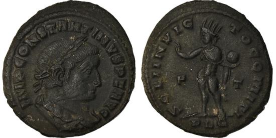 | | Coin, Constantine I, Follis, 323-324, Lyon - Lugdunum, , Bronze | | | laureate, draped bust right, Sol standing left with raised right hand and orb in left; F-T across fields | | FEATURES |