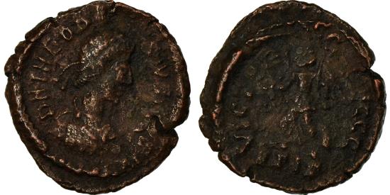 | Coin, Theodosius I, Nummus, 384-387, Siscia, , Copper, RIC:39 b2 |