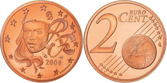 | | France, 2 Euro Cent, 2008, Proof / BE, , Copper Plated Steel, KM:1283 | | | Human face, Denomination and globe, Fabienne Courtiade | | FEATURES |