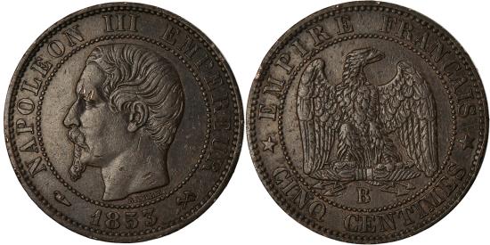 | | Coin, France, Napoleon III, 5 Centimes, 1853, Rouen, , KM 777.2 | | | Napoléon III, Head left, Eagle | | FEATURES |