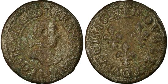 | Coin, France, Louis XIII, Double Tournois, 1618, Lyon, , Copper |