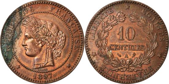 | | Coin, France, Cérès, 10 Centimes, 1897, Paris, , Bronze, KM:815.1 | | | Cérès, Laureate head left, Denomination within wreath | | FEATURES |