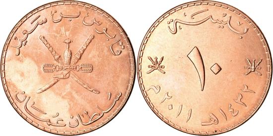 | | Coin, Oman, Qabus bin Sa'id, 10 Baisa, 2011, British Royal Mint, , Bronze | | | National arms, Value with both dates | | FEATURES |