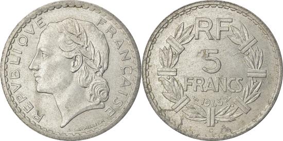 | | Coin, France, Lavrillier, 5 Francs, 1945, Castelsarrasin, , Aluminum | | | Lavrillier, Laureate head left, Denomination above date within sectioned wreath | | FEATURES |