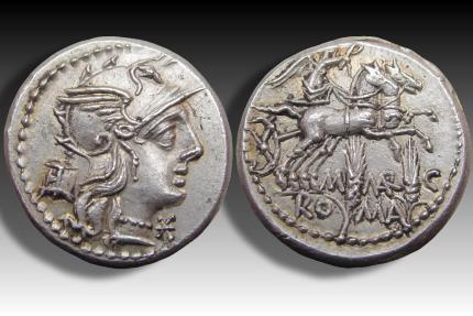 AR denarius M. Marcius, Rome 134 B.C. - nearly as minted, high quality -