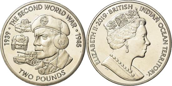 | Coin, British Indian Ocean, 2 Pounds, 2019, 2ème guerre mondiale - Infanterie |