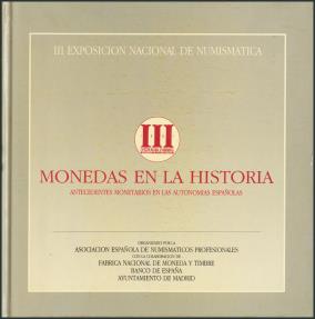 III EXPOSICION NACIONAL DE NUMISMATICA. Edición: 1987. Editado por: Asociación Española de Numismáticos Profesionales, con la colaboración de Jesús Vico, Jorge Marín de la Salud y Miguel Crusafont. Muy interesante catálogo en el que se repasa la importancia de la moneda en la Península Ibérica desde la antigua grecia hasta finales del siglo XX. Bien conservado.