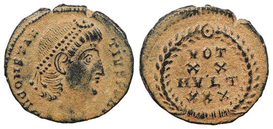 AE4 1.21g. 16mm. 347-348 A.D. Antioch Mint