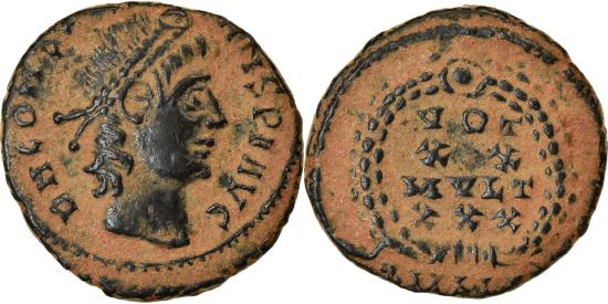 | | Coin, Constans, Nummus, 347-348, Antioch, , Bronze, RIC:115 | | | VOT/XX/MVLT/XXX within a wreath | | FEATURES |